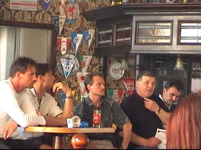 sich den Fragen der ca. 25 Fans. Da auch einige Fans anwesend waren