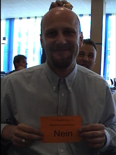 77 abgegebene Stimmen (76 gültige) -> 39 Stimmen erforderlich 1. Dirk Stahmann 68 Stimmen 2. Wolfgang Seguin 66 Stimmen 3. Joachim Streich 65 Stimmen 4. Erwin Bugar 64 Stimmen 5. Klaus-Dieter Runge 63 Stimmen 6. Helmuth Hönel 55 Stimmen 7. Georg Olm 48 Stimmen 8. Thomas Müller und Olaf Heling je 44 Stimmen 10. Klaus-Peter Krebs 39 Stimmen .... weitere interessante Ergebnisse: Stefan Peplinski (planbau jk) 9 Stimmen Bernd Heynemann 6 Stimmen Diese Mitglieder vervollständigen ab sofort den Verwaltungsrat. Das laut neuer Satzung erforderliche elfte Mitglied wird auf der im zweiten Halbjahr stattfindenden Mitgliederversammlung gewählt, ebenso wie der fünfte "Nachrücker" Die Nachrücker: sind die Herren Kirsten, Seidel, Nüse und Kühnel |